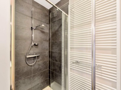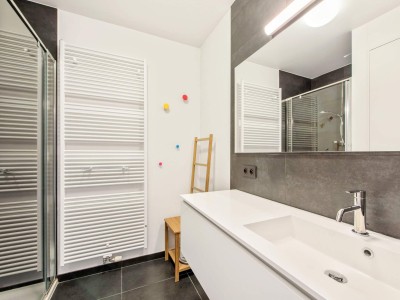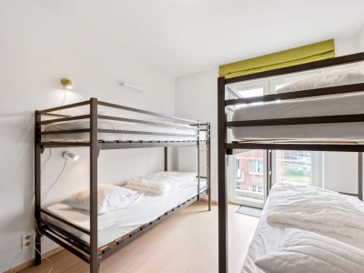 Hall, toilet, woonkamer, moderne ingerichte keuken voorzien van alle comfort, badkamer met inloopdouche, slaapkamer met een dubbelbed, slaapkamer met 2 stapelbedden. Balkon aan de woonkamer.