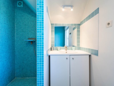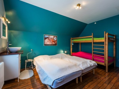 Op de 2de verdieping: slaapkamer met 2 éénpersoonsbedden en stapelbed en slaapkamer met éénpersoonsbed, toilet en een badkamer met douche.