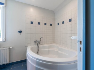 Op de 1ste verdieping: 2 slaapkamers met elk met 2 éénpersoonsbedden, een toilet, badkamer met bad.