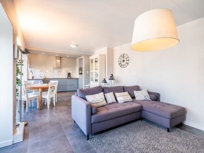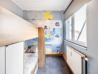 Dit ruime appartement bestaat uit een hall, modern ingerichte woonkamer met slaapbank; open keuken met vaatwasser, combi-oven, koelkast met vriesvak, badkamer met Italiaanse douche, apart toilet, 2 slaapkamers met tweepersoonsbed, slaapkamer met stapelbed. Wasmachine en droger aanwezig, wifi en digitale televisie. 1 van de 2-persoonsslaapkamers heeft een eigen kleine zitkamer met televisie* (voor dvd-speler of spelcomputer, geen tv-zenders). Lift naar 3de verdieping en dan met de trap naar de 4de verdieping.
