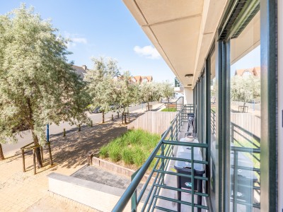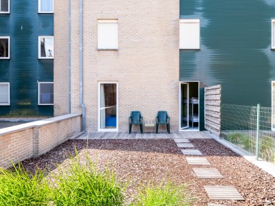Het app bestaat uit een hall, woonkamer met zonnig balkon en open ingerichte keuken, 2 ruime slaapkamers, badkamer met ruime douche, apart toilet. Achter de slaapkamers is er een ruim tuinterras met eethoek.