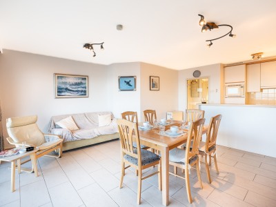 Ruim en stijlvol appartement op de 5de verdieping met 2 slaapkamers. Gelegen op de Zeedijk, op wandelafstand van het winkelcentrum. Zonnig balkon aan de achtergevel en comfortabel balkon met zeezicht. Modern gemeubileerde woonkamer met open ingerichte keuken. Slaapkamer met dubbel bed en eigen douchekamer. Slaapkamer met 2 stapelbedden. Badkamer met bad. Apart toilet.