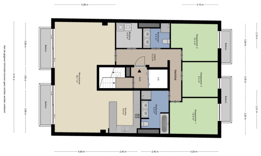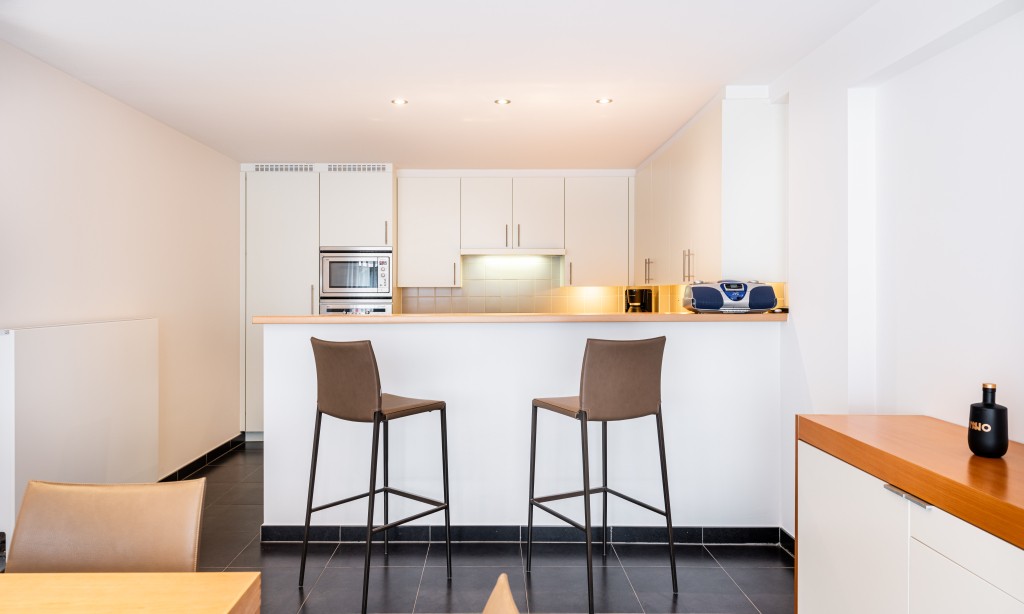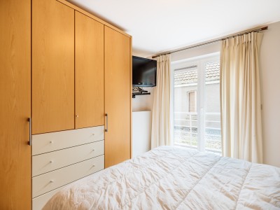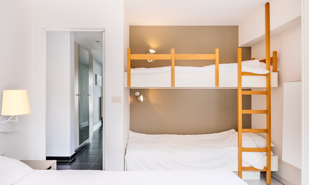 Het appartement bestaat uit een hall, woonkamer met open moderne ingerichte keuken, badkamer met bad, douche en toilet. Er zijn 3 slaapkamers: 1 slaapkamer met dubbelbed en stapelbed; 1 slaapkamer met dubbelbed en de 3e slaapkamer met dubbelbed.Plan van de vakantiewoning kan je terugvinden bij de foto's.
