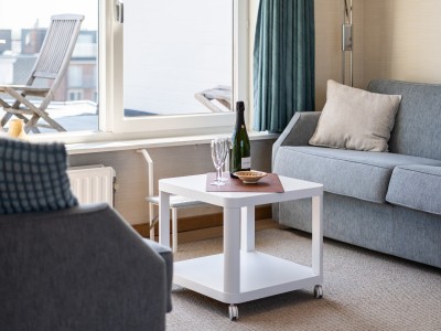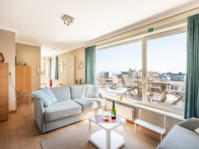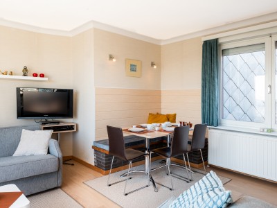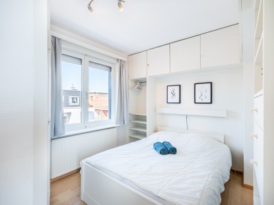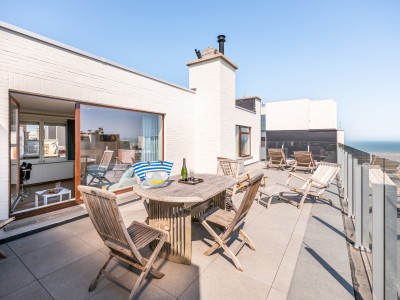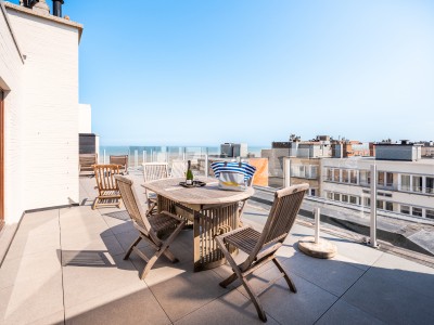 Dakappartement op de 6de verdieping. Het appartement is gelegen op een paar passen van de zee (zeezicht vanop het terras) en dicht bij de winkels en restaurants. Ingericht in klassieke stijl. Er zijn een 10-tal treden voordat u de voordeur van het gebouw bereikt en dan is er een lift tot aan de vijfde verdieping en vervolgens trappen tot aan de zesde verdieping. Mooi groot terras met zeezicht. Wifi en digitale Tv aanwezig. Huisdieren zijn toegelaten.