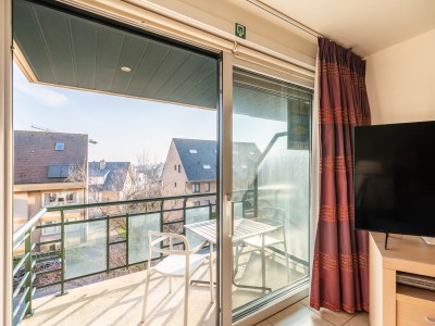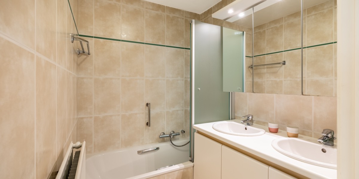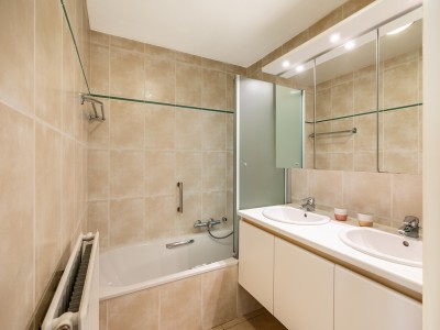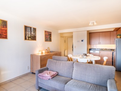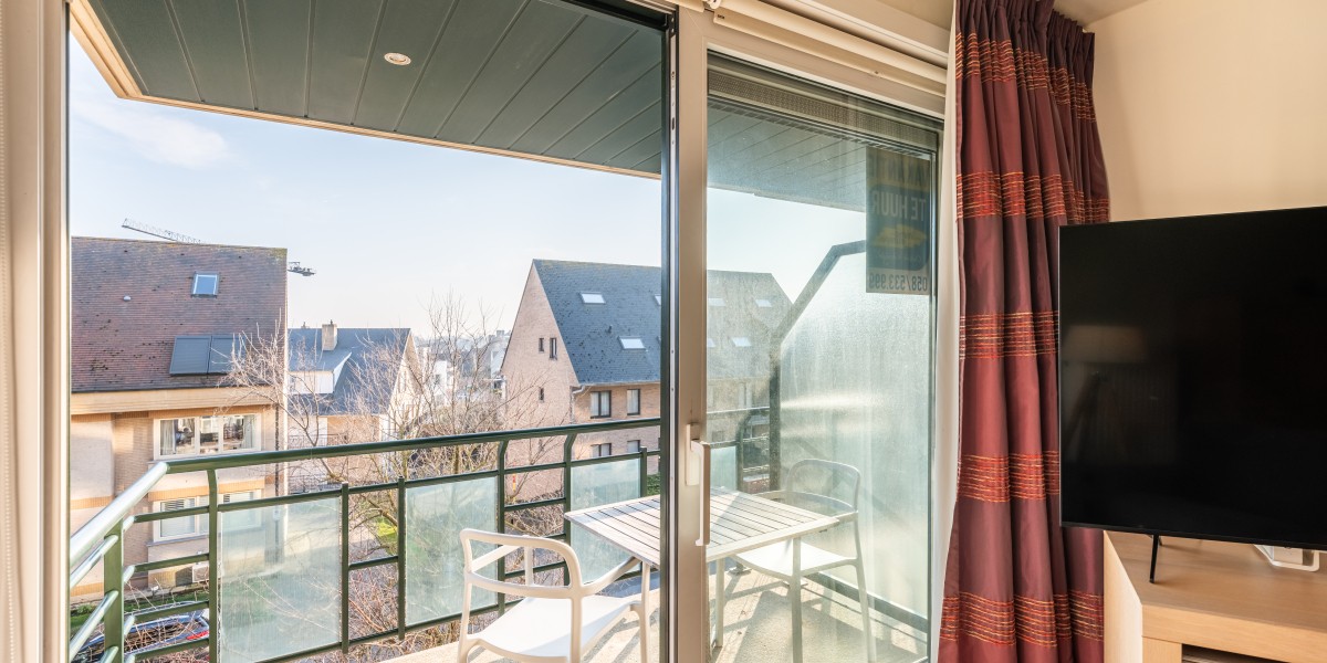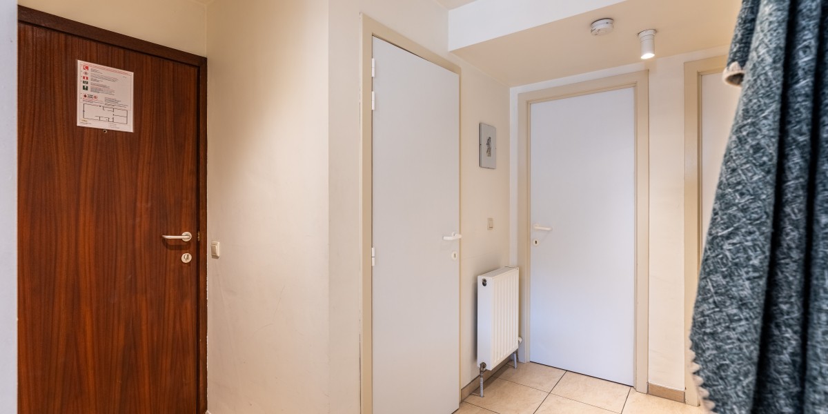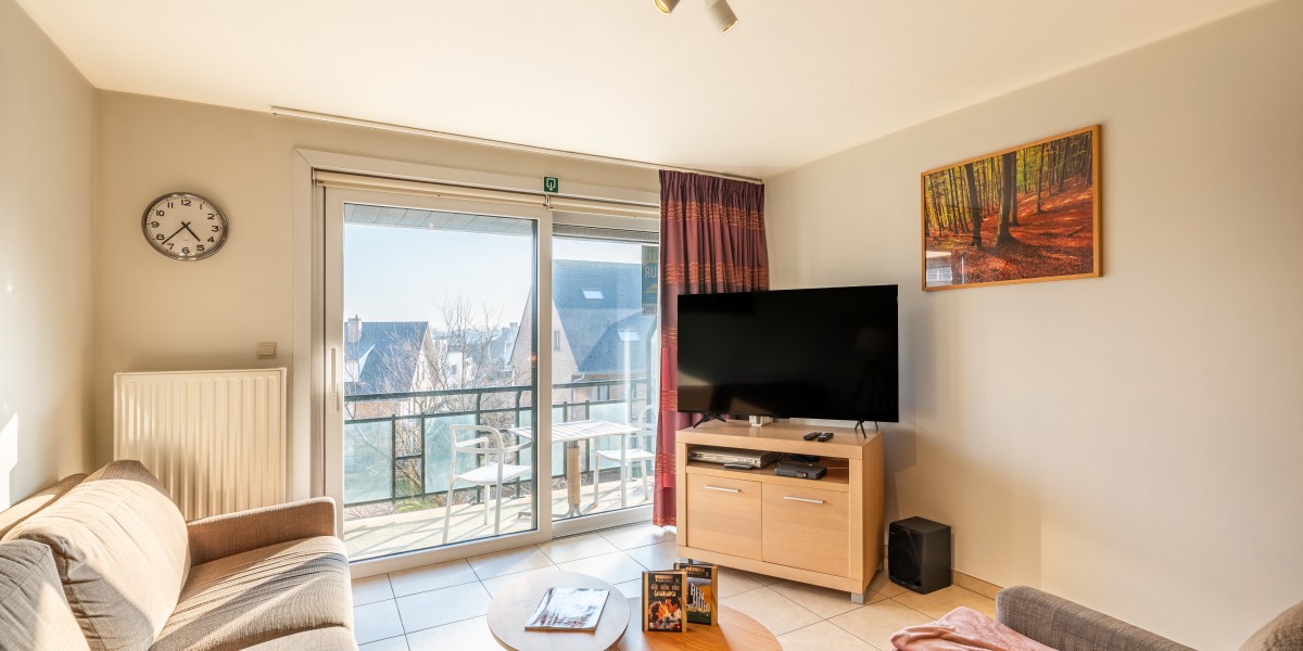Het appartement bestaat uit inkom, toilet, badkamer met bad, slaapkamer met dubbelbed, slaapkamer met 2 éénpersoonsbedden en stapelbed, ingerichte keuken met vaatwas en microgolf, zonnige woonkamer met balkon (klein zeezicht).