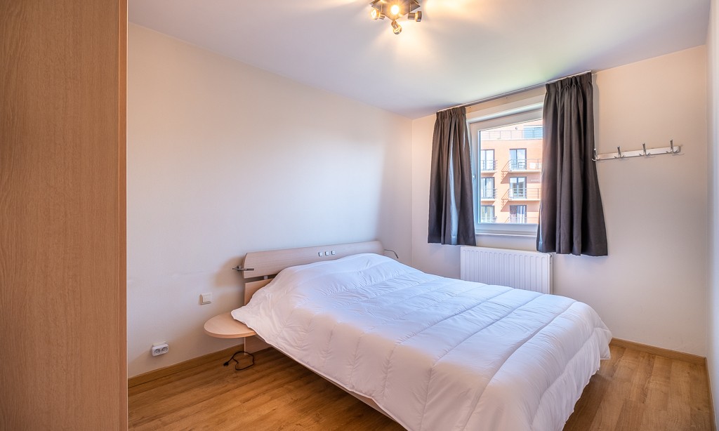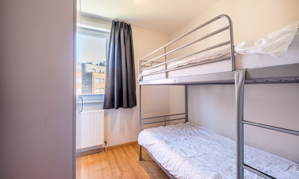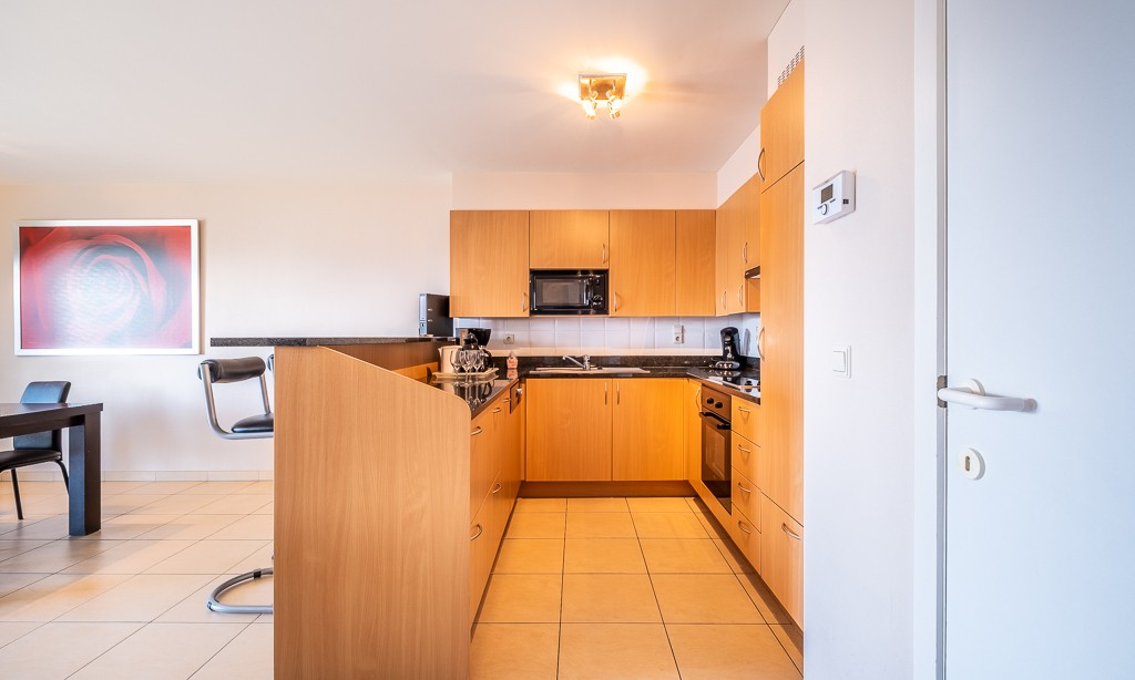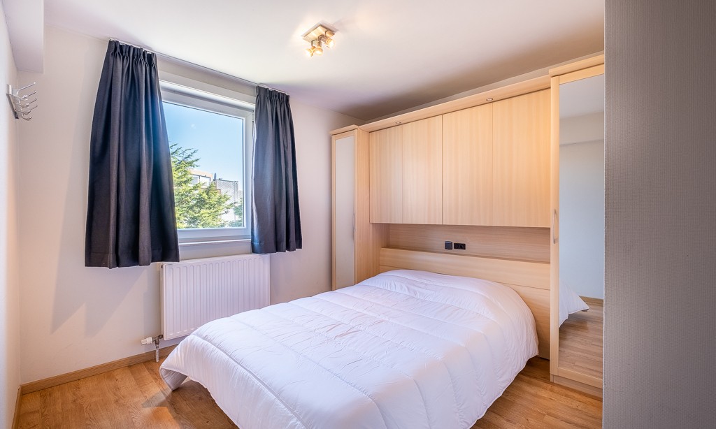 Dit appartement bestaat uit een hall, grote zonnige woonkamer /eetkamer met volledig ingerichte open keuken, berging, toilet apart, 2 badkamers met douche, 1 slaapkamer met een stapelbed en 2 slaapkamers met elk een tweepers. bed.