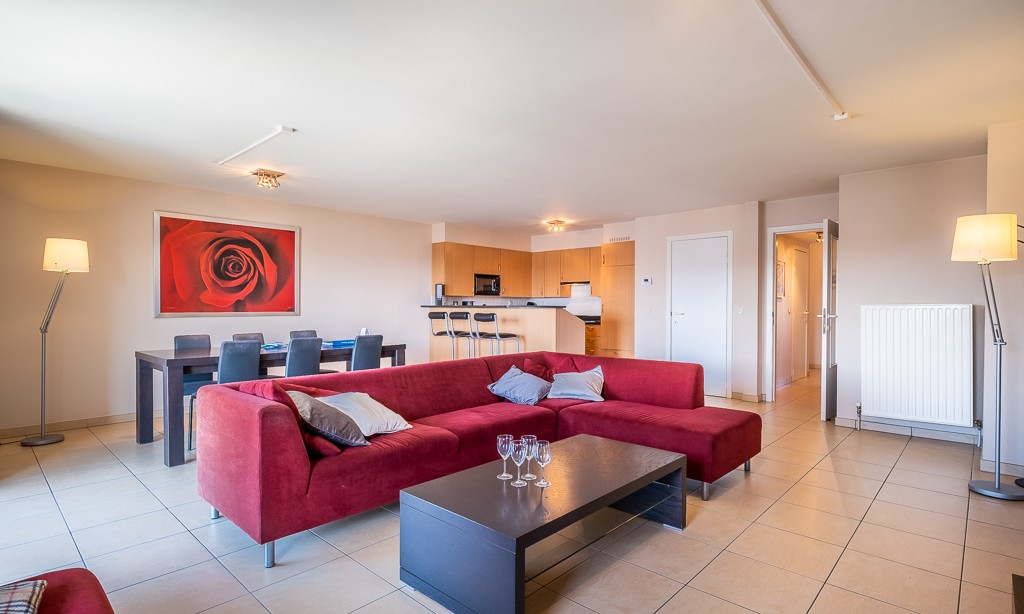 Groot zonnig, modern appartement met design meubilair en 3 slaapkamers 150m van zee 200m van het winkelcentrum van Koksijde. Zonnig balkon, garage in het gebouw. Huisdieren niet toegelaten.