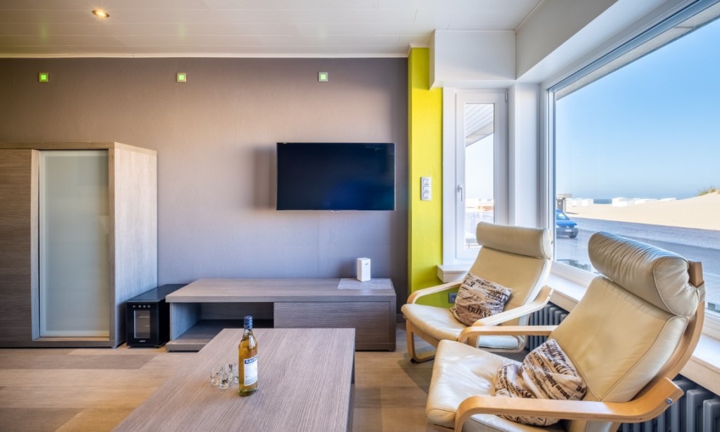 Hall, toilet, woonkamer/eetkamer met prachtig zicht op de duinen, moderne ingerichte keukenhoek, badkamer met douche,1 slaapkamer met 1 tweepers. bed en 1 kamer met 2 stapelbedden (4 pers in 1 kamer). Huisdieren zijn verboden en het is zoals in al onze vakantiewoningen niet toegestaan om te roken.