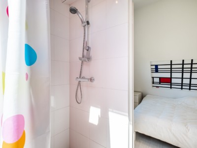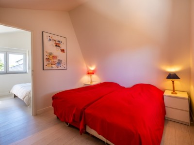 Slaapkamers met 2 éénpersoonsbedden en een slaapkamer met een tweepersoonsbed. Nuttig om te weten is dat je door de slaapkamer met de 2 éénpersoonsbedden moet gaan om in de 2de kamer met het dubbel bed te komen. Via de kamer met het dubbel bed heb je toegang tot de 2de badkamer met bad, douche, lavabo en toilet