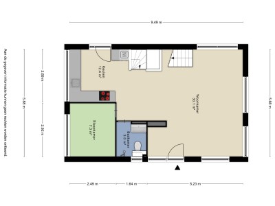 Een inkomhal, slaapkamer met een tweepersoonsbed, badkamer met douche en lavabo en toilet, open ingerichte keuken voorzien van alle comfort met toegang tot het terras en de tuin, woonkamer en ruime zithoek, gezellige gashaard.
