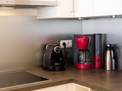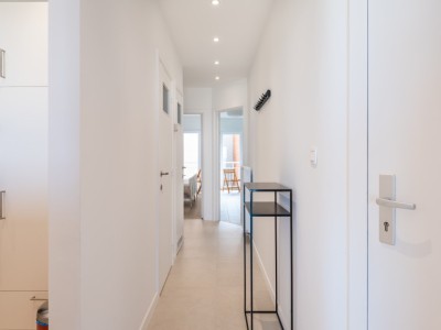 Het appartement bestaat uit een woonkamer met uitzicht op zee, een keuken voorzien van alle comfort, een badkamer met bad, 2 slaapkamers, 1 met 2 aparte bedden en 1 met 2 stapelbedden + 1 extra uitschuifbaar bed. Er is ook nog een doucheruimte in de stapelbedkamer.
