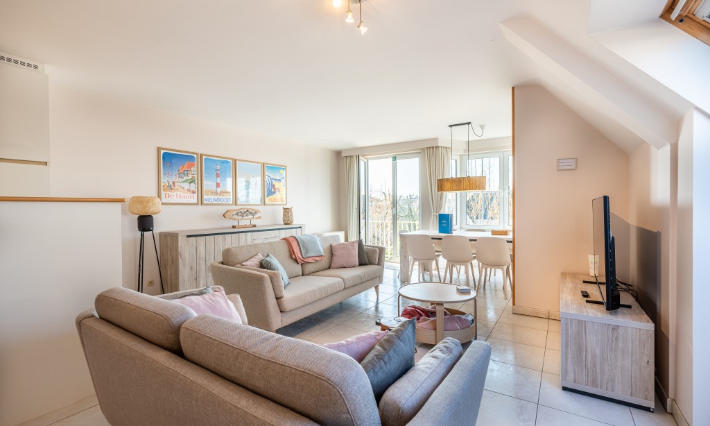 Zonnig duplex appartement met 4 slaapkamers op 2 minuutjes van de zee, tussen Koksijde en St-Idesbald. Openbaar vervoer op 200m. Overdekte en openlucht parking inbegrepen, wifi, 2 badkamers en 2 toiletten. Dit appartement is ideaal voor een zorgeloos verblijf dicht bij zee met de hele familie.