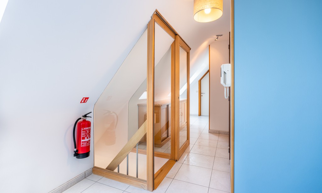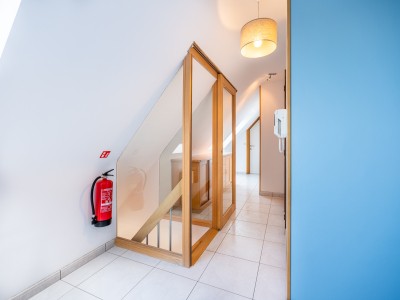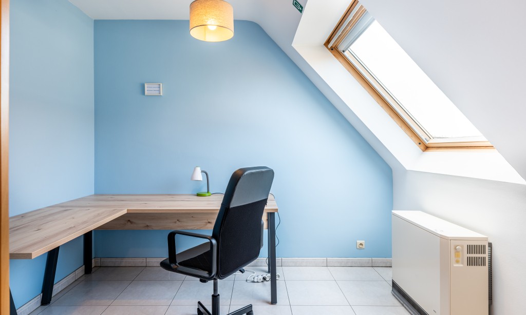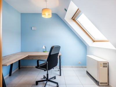Op de 3de verdieping bevindt zich een ruime bureau, badkamer met douche en toilet, slaapkamer met een tweepersoonsbed
