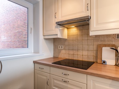 Zonnige woonkamer met slaapbank voor 2 personen, een aparte keuken voorzien van alle comfort, toilet, badkamer met inloopdouche, slaapkamer met dubbel bed, slaapkamer met éénpersoonsbed en onderschuifbed. Belangrijk om te weten: Trap naar de voordeur van het gebouw.