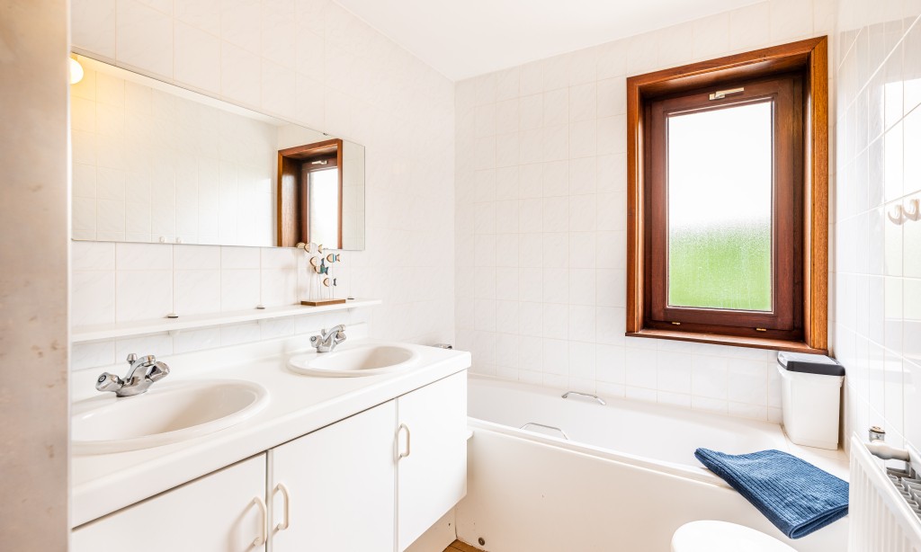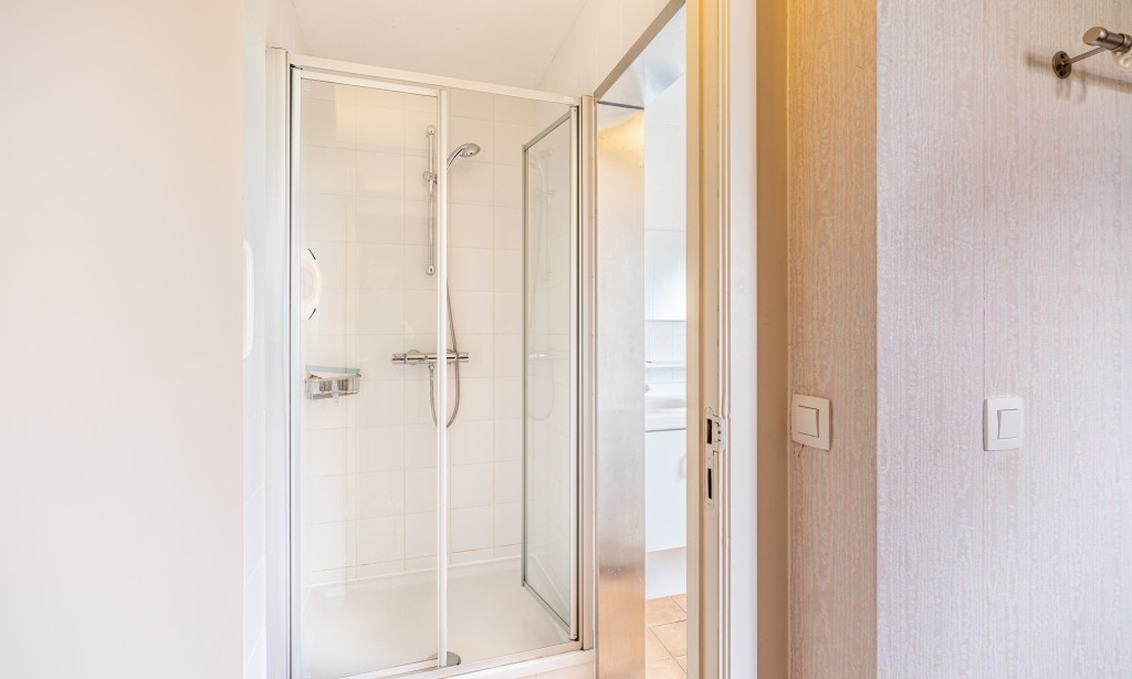 • Sanitair: Badkamer met douche, dubbele lavabo, bad, 1 toilet afzonderlijk van de badkamer
