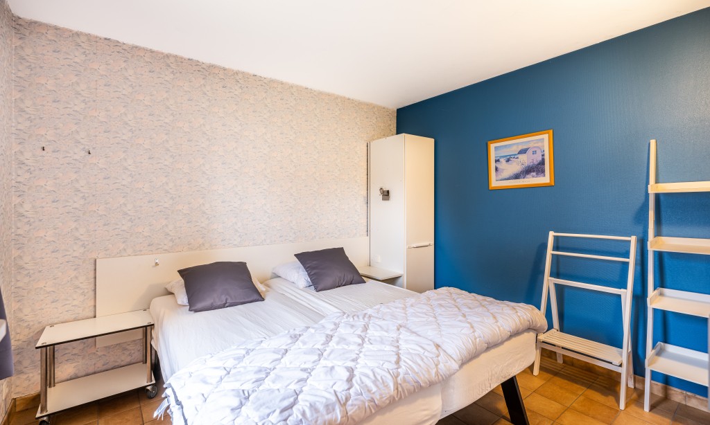 • Slaapkamers: tweepersoonsbed (160x200) met 2p dekbed, tweepersoonsbed (160x200) met 2 matrassen van 1p en 2 éénpersoonsdekbedden, 5 éénpersoonsbedden (80x200)
