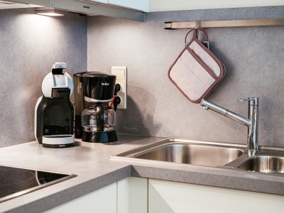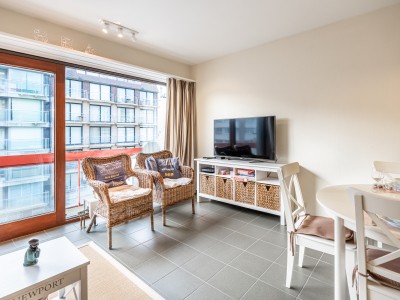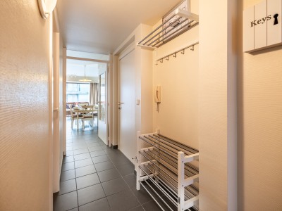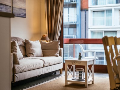 Via de inkomhal kom je binnen in de zonnige en gezellige woonkamer met toegang tot balkon met zeezicht, open ingerichte keuken voorzien van elektrische kookplaat, combi-microgolf, vaatwas, koelkast met vriesvak. De badkamer heeft een ligbad met douchewand en twee wastafels. Het toilet is afzonderlijk van de badkamer. Achteraan liggen de 2 slaapkamers, één slaapkamer met dubbel bed en één slaapkamer met een stapelbed.