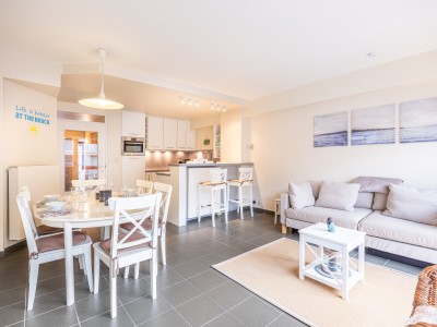 Gezellig en zonnig tweekamerappartement met zijdelings zeezicht in het centrum van St-Idesbald. Perfecte ligging voor een verblijf met kinderen. Je hoeft de straat met de tram niet over te steken om naar de zee te gaan. De supermarkt, bakkers, slagers, viswinkels en restaurants liggen op een steenworp van het appartement.