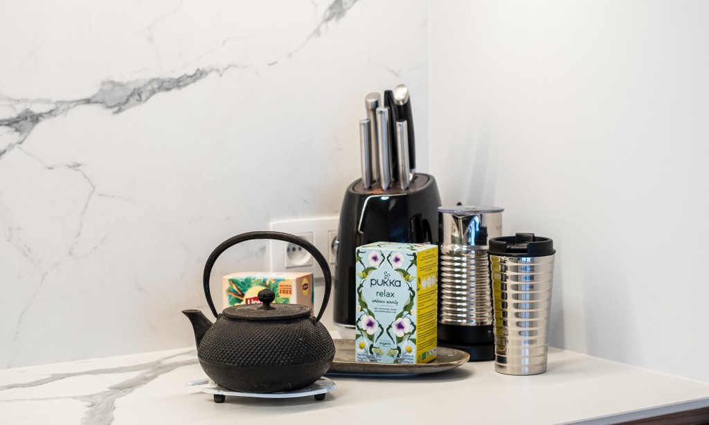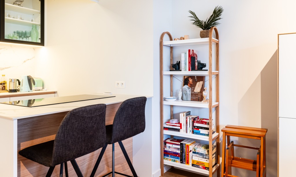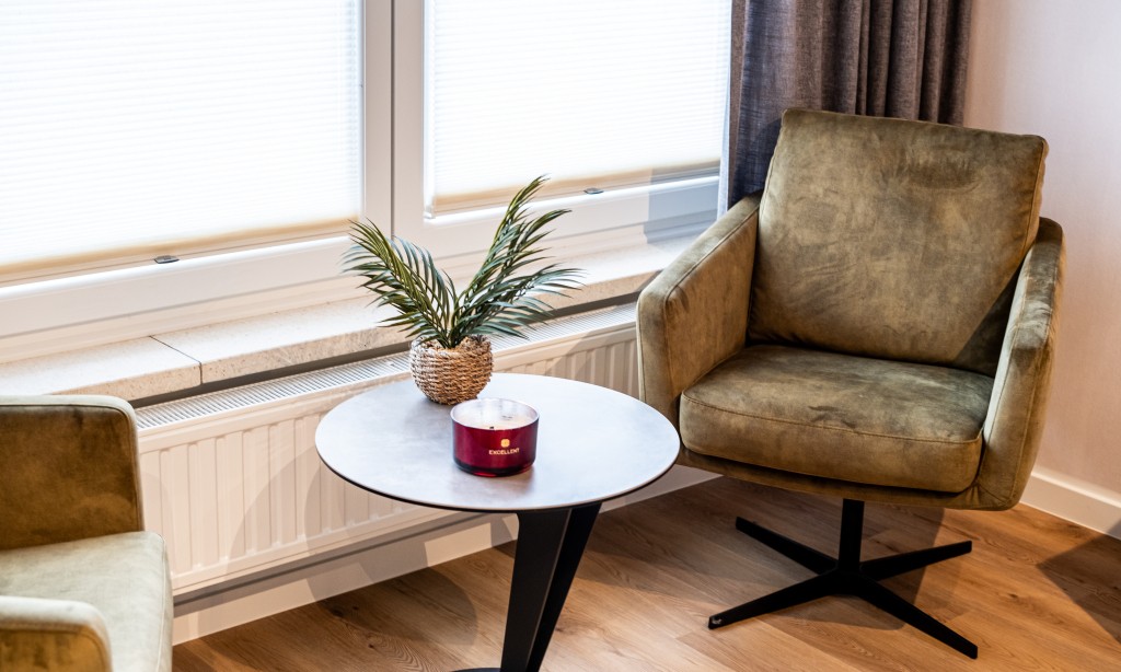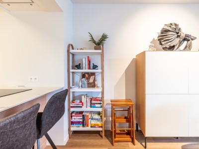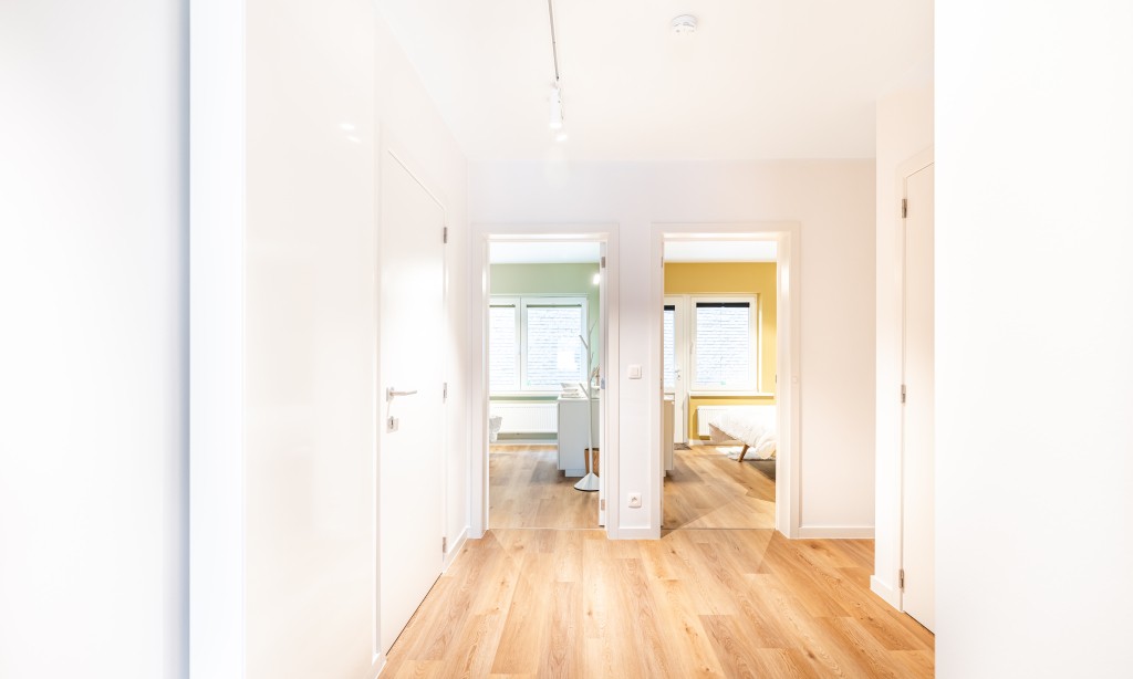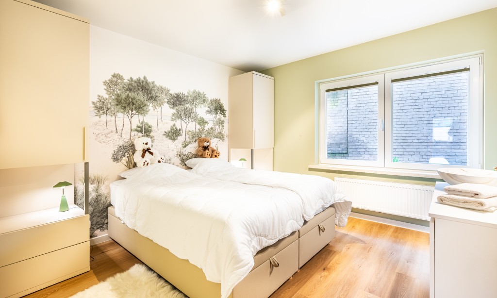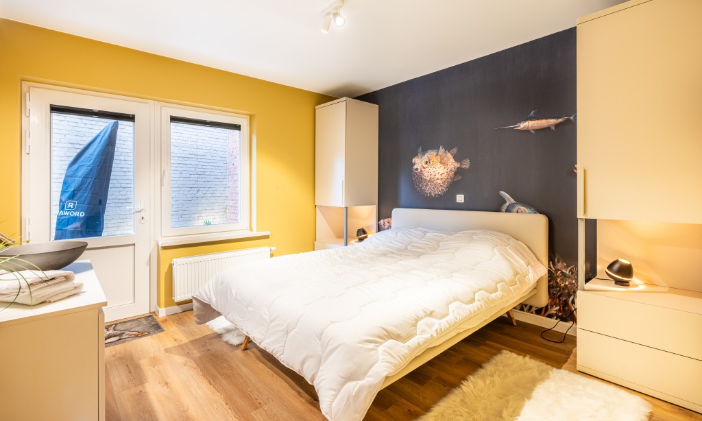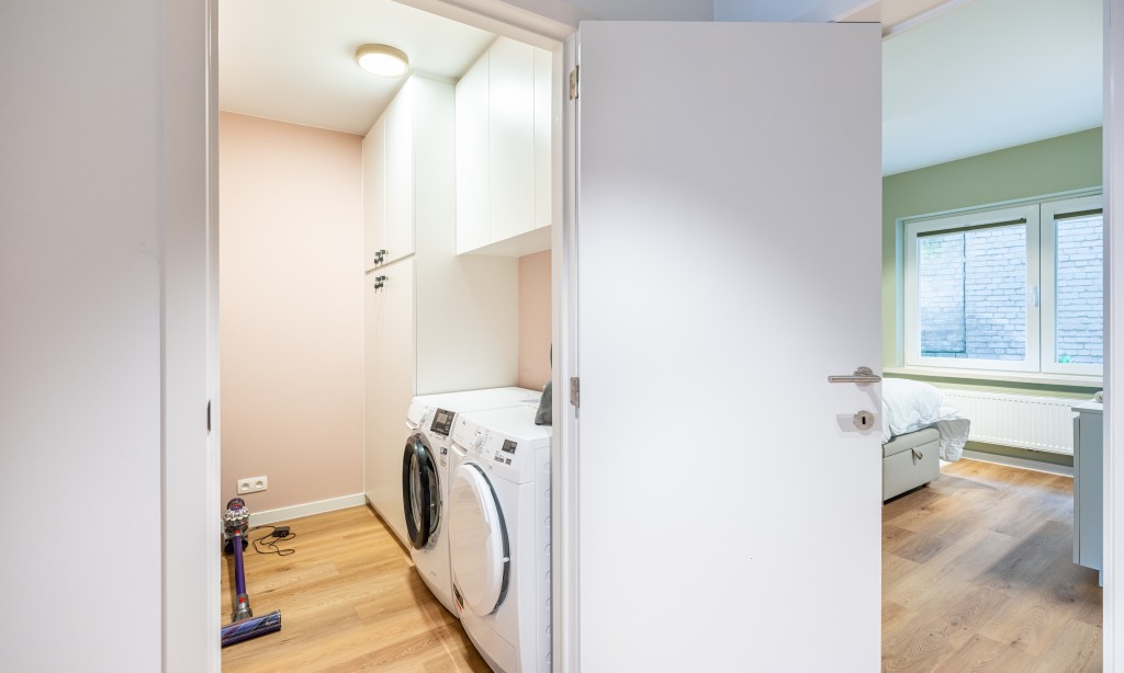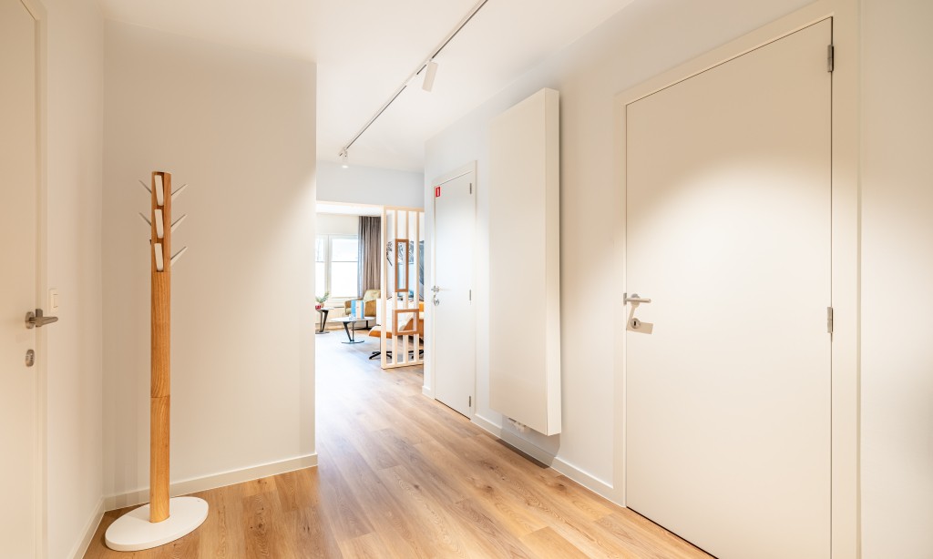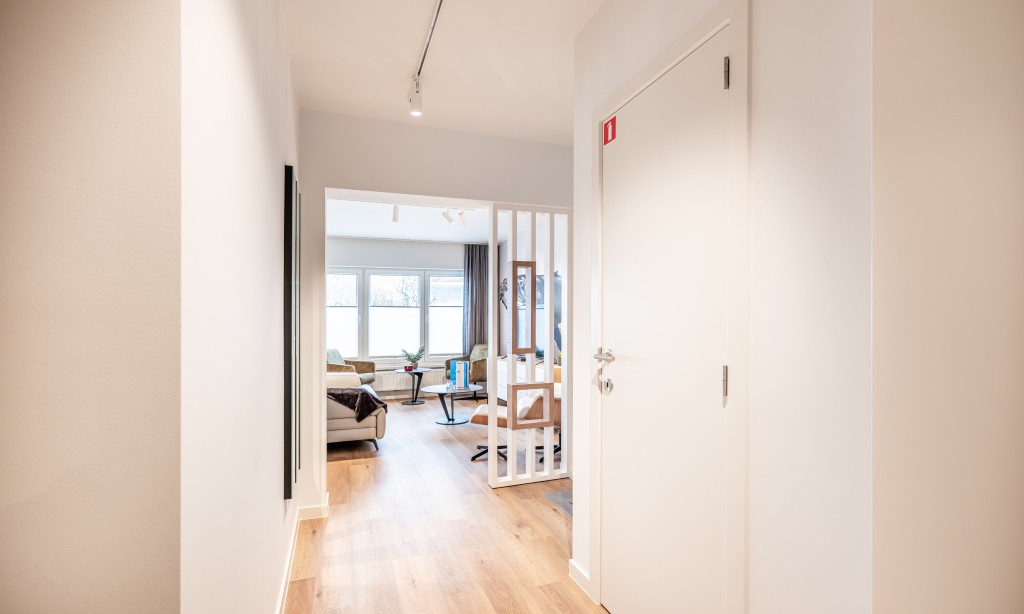 Voor meer privacy is het appartement voorzien van elektrische rolluiken, gordijnen en Luxaflex.