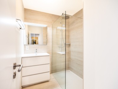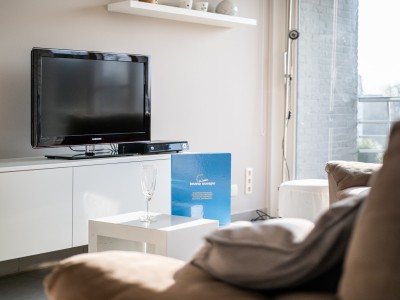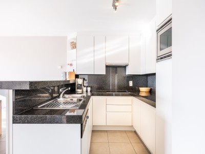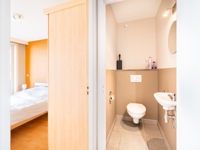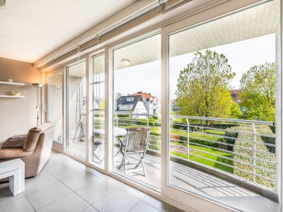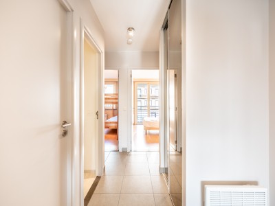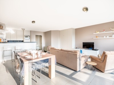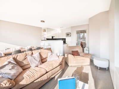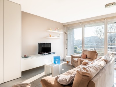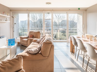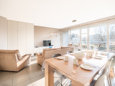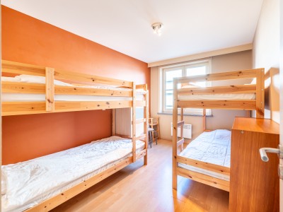 Zonnige woonkamer met toegang tot balkon, open ingerichte keuken voorzien van alle comfort, vestiaire, toilet, badkamer met bad (met douchewand), slaapkamer met dubbel bed, slaapkamer met 2 stapelbedden.