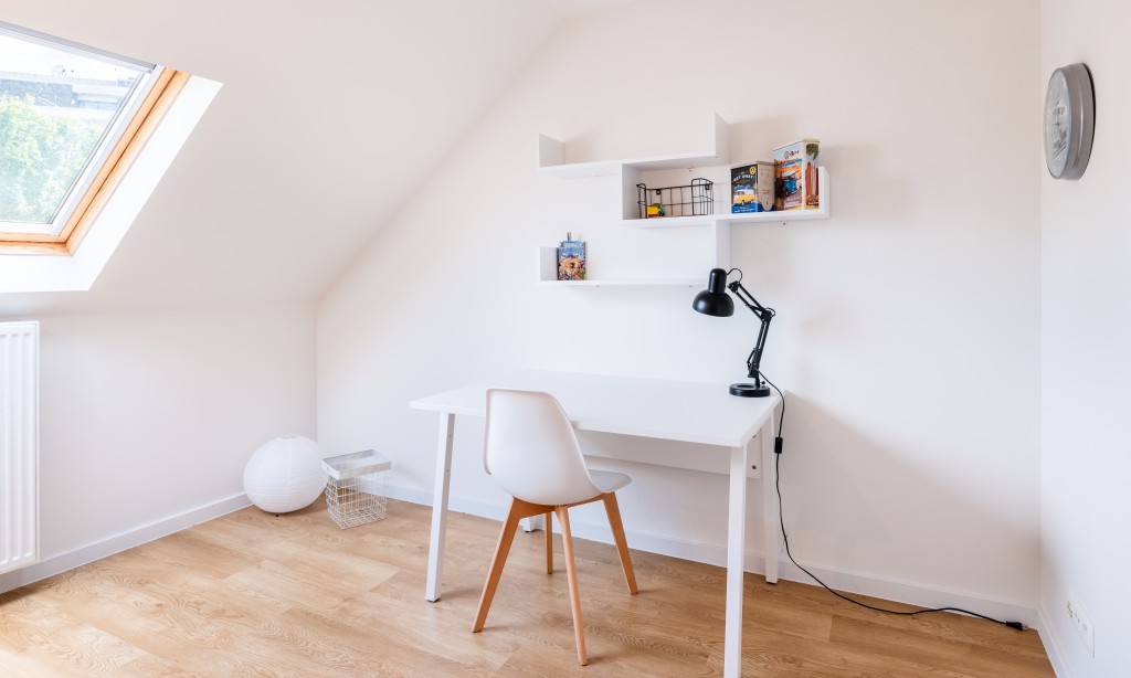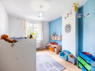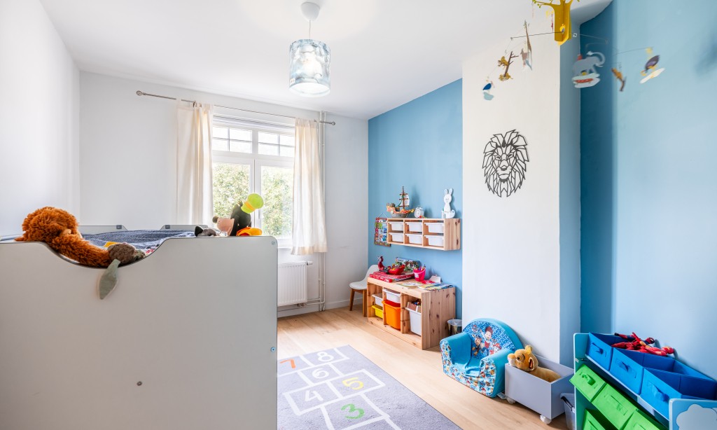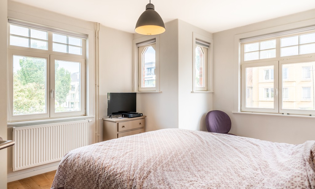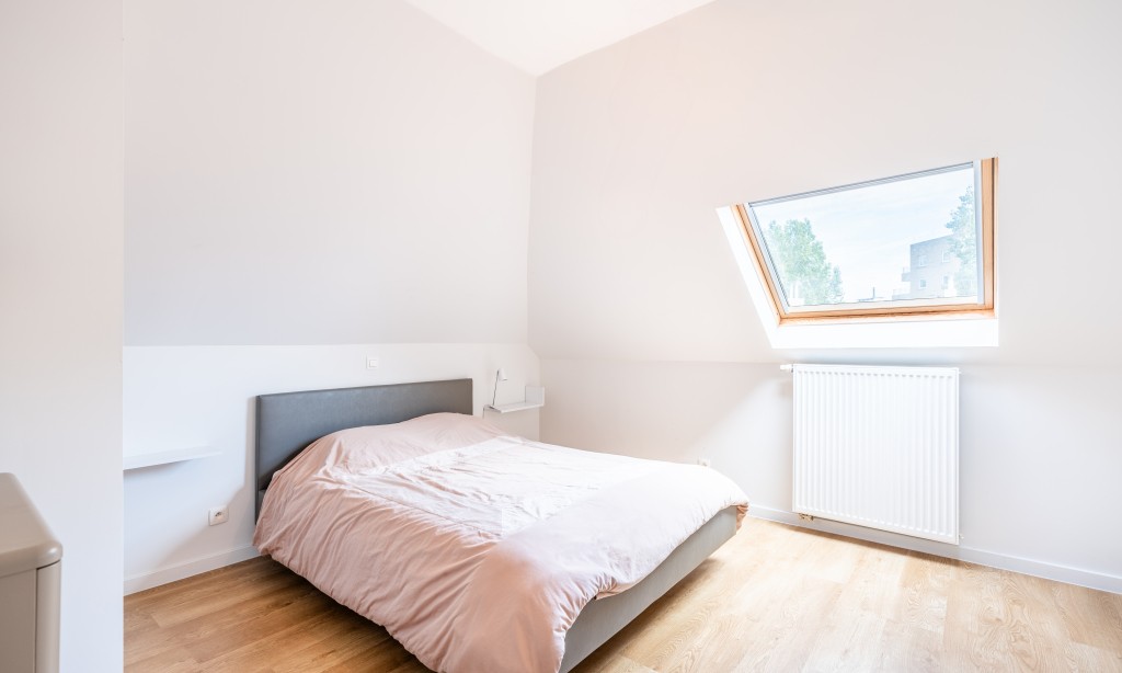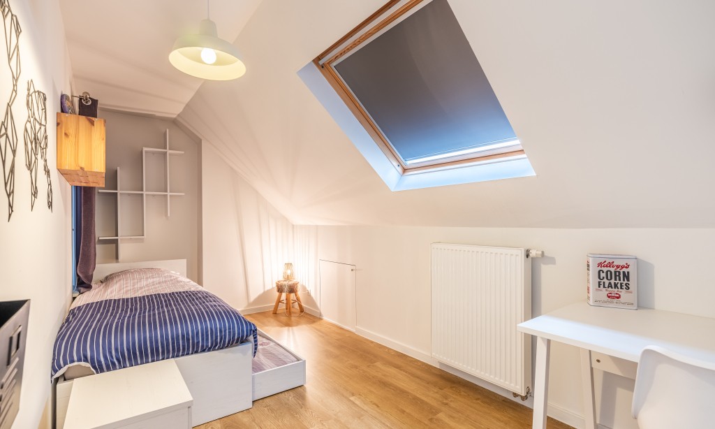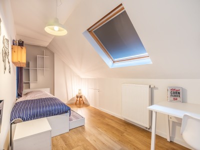 1 grote slaapkamer met een tweepersoonsbed en bureau, 1 slaapkamer met een eenpersoonsbed en onderschuifbed, evenals een bureau. Op deze verdieping is er ook een toilet in de nachthal.