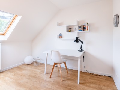 Vanuit de keuken heeft u toegang tot het terras (tuinmeubelen in de garage). U kunt één auto parkeren op de oprit (helling) voor de garage en één auto voor de woonkamer.