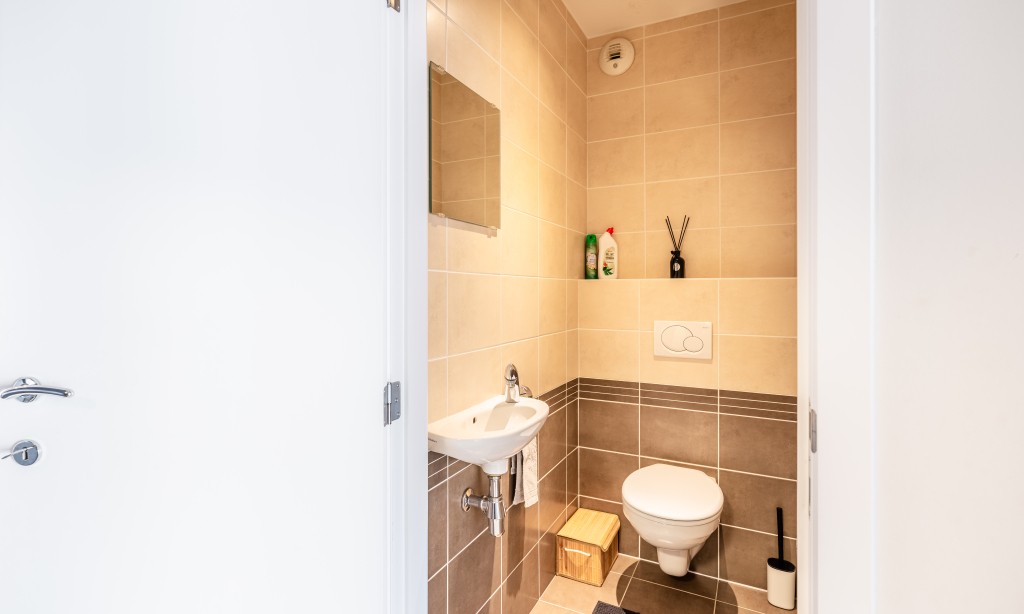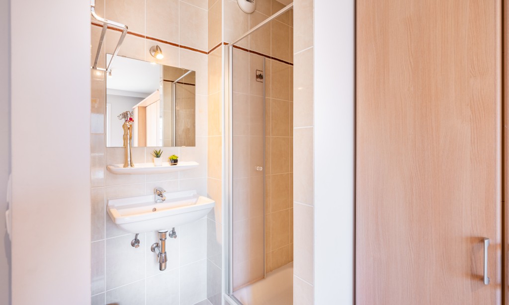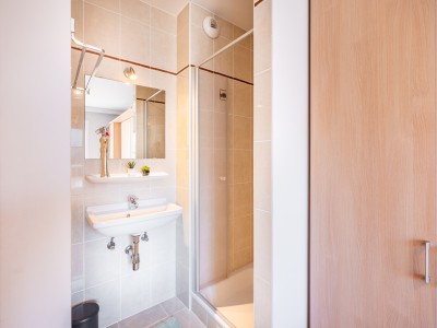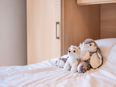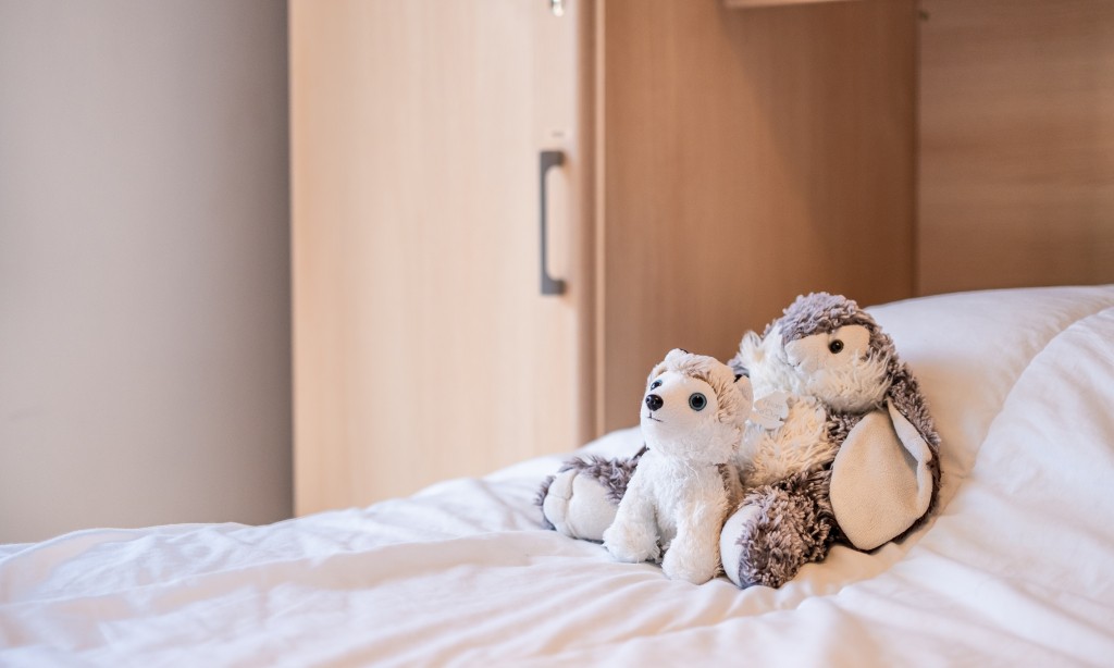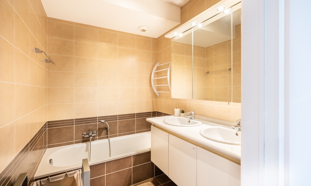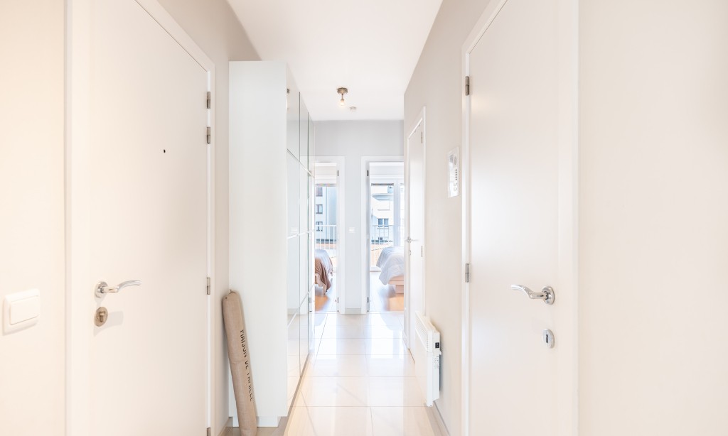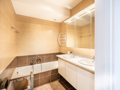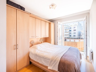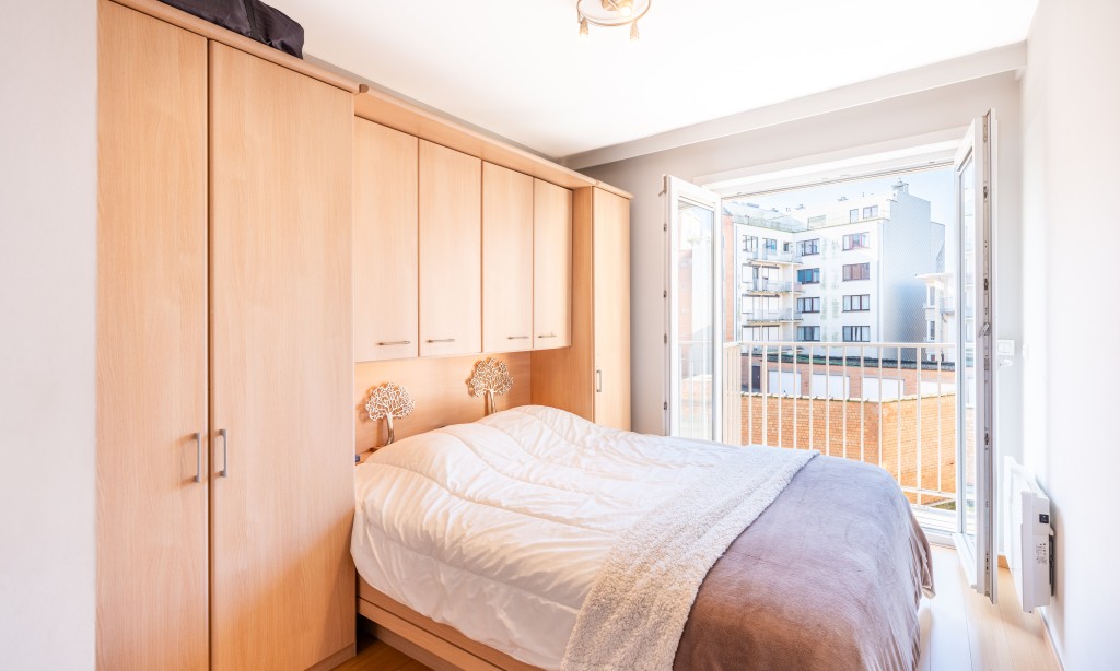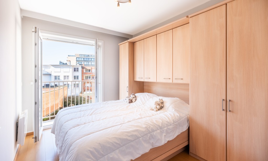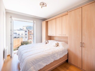 Twee slaapkamers met tweepersoonsbedden (160 cm), grote kleerkasten en een zonnig balkon aan de achterzijde van het gebouw. Eén van de slaapkamers beschikt ook over een douche en wastafel. Een reisbabybedje is aanwezig.