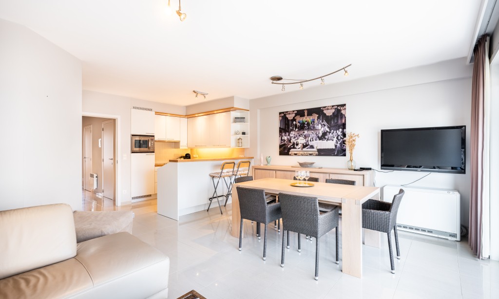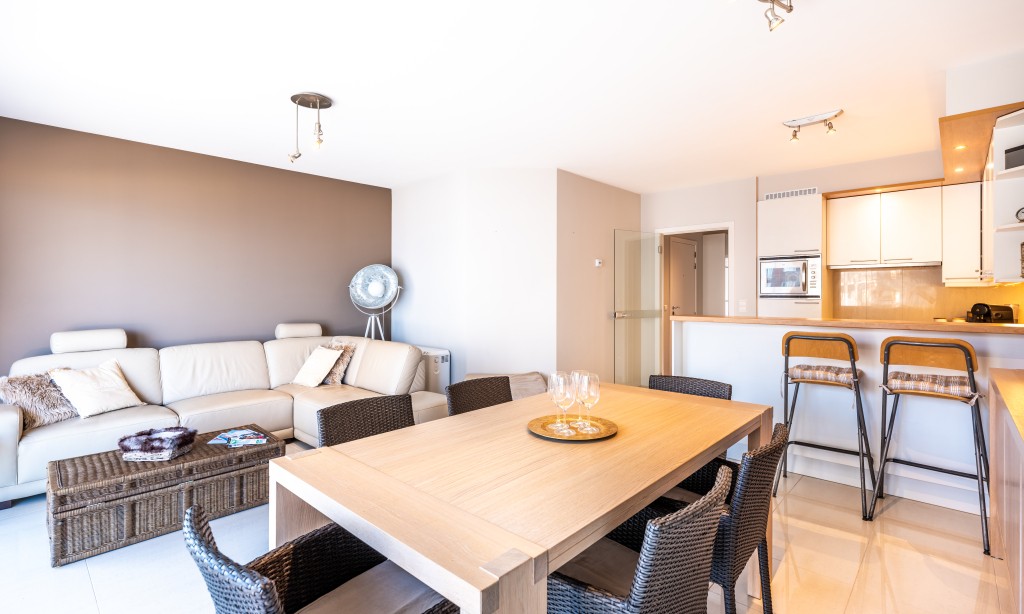 Modern appartement met 2 slaapkamers en een zijdelings zeezicht. Dit appartement op de 2e verdieping is zeer goed onderhouden en voorzien van kwaliteitsvol meubilair. Open keuken met alle comfort, badkamer en een slaapkamer met douche. Gelegen op slechts 20 m van het strand. Niet-roken en geen huisdieren toegestaan.