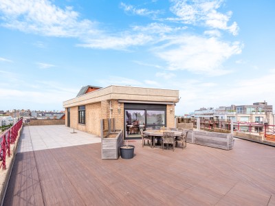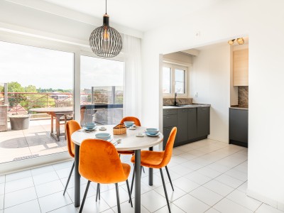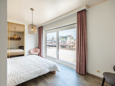 Stijlvol groot 3 kamer penthouse in het centrum van Koksijde op 500m van de zee en heel dicht bij de winkels. Dit recent gerenoveerde dakappartement ligt op de bovenste verdieping en heeft een groot terras rondom het volledig appartement. Luxueus verblijven aan zee met een groot gezin is hier verzekerd.