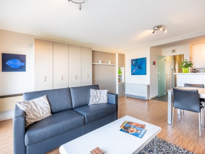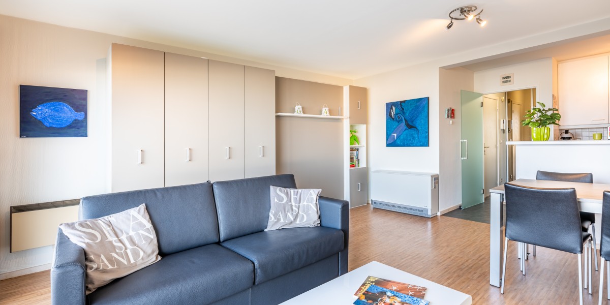 Deze gerenoveerde ruime studio op de zeedijk van St-Idesbald met prachtig zicht op de duinen en de zee is een echte aanrader voor een leuke vakantie aan zee.