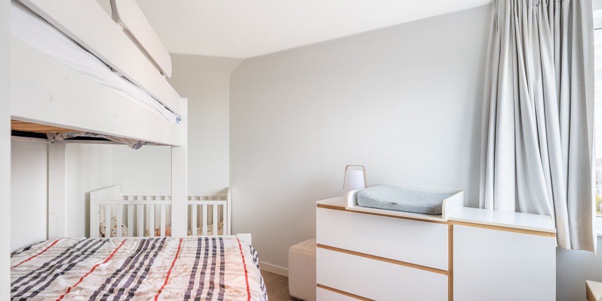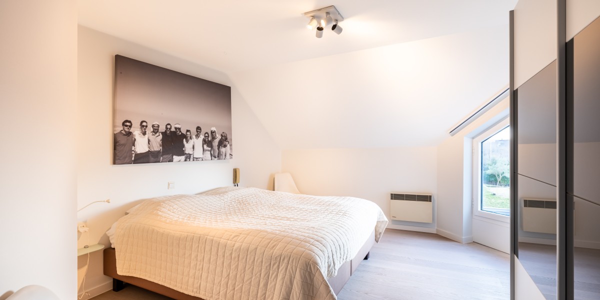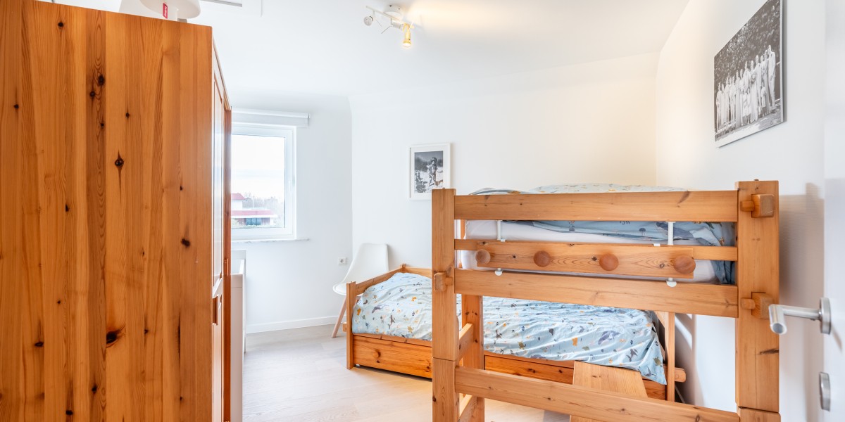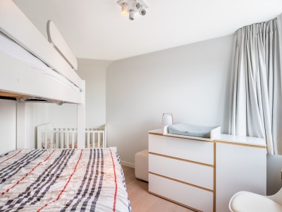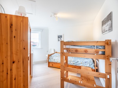 Hal, toilet, een slaapkamer 2 éénpersoonsboxspringbedden (90 x 200) en eigen badkamer met bad en wastafel, slaapkamer met stapelbed (2 x eenpersoonsbed) en kinderbedje, slaapkamer met stapelbed met een tweepersoonsbed beneden en een eenpersoonsbed boven. In deze kamer staat er ook een kinderbedje en een verschoningstafel. Op deze verdieping bevindt zich de 3de badkamer met douche en wastafel.