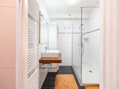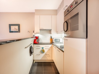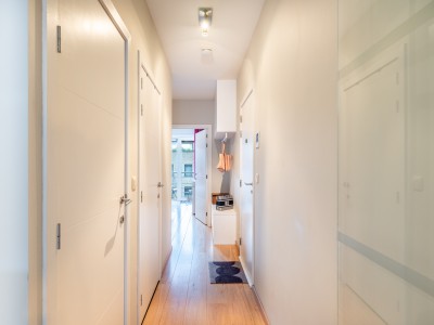 Inkomhal, apart toilet, woonkamer met balkon, volledig uitgeruste open keuken, badkamer met inloopdouche, berging met wasmachine en strijkplank, 1 slaapkamer met een tweepersoonsbed en balkon.