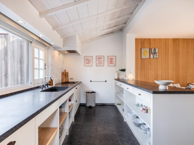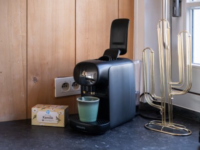 De keuken is volledig uitgerust en beschikt over een oven (Smeg), microgolf, vaatwasser, koelkast met diepvries, gasfornuis, waterkoker en een Nespresso (L’Or Barista) koffiemachine.
