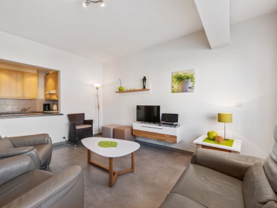 Dit appartement bestaat uit een hall, apart toilet, ruime berging, woonkamer/eetkamer, aparte keuken met alles erop en eraan, badkamer met douche en wasmachine, slaapkamer met dubbelbed en slaapkamer met 2 stapelbedden (1 vast stapelbed en 1 opklap-stapelbed).