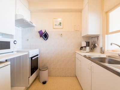 Hall, woonkamer met zeezicht, eenvoudige keuken met doorgeefluik, toilet, badkamer met bad, slaapkamer met 2 stapelbedden, slaapkamer met dubbel bed, digitale tv, kleine dieren toegelaten.