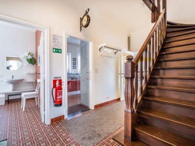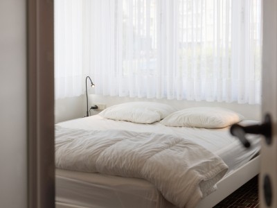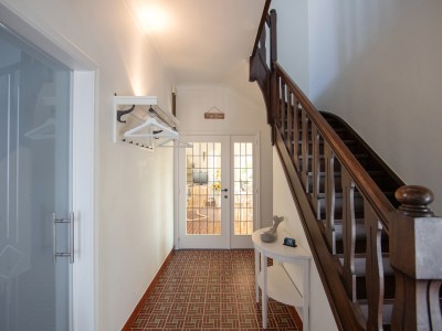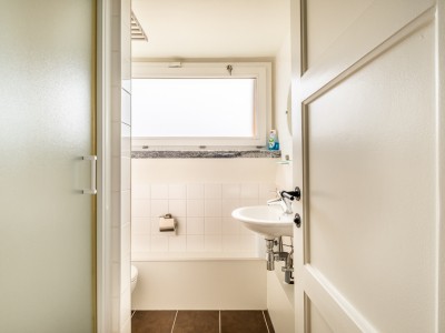 Op de gelijkvloers bevinden zich de inkomhall, een toilet, een slaapkamer met dubbel bed met wastafel en eigen douche, de keuken, de woonkamer/zitkamer met toegang tot het terras. Via de keldertrap heeft u toegang tot de garage (2 auto's).