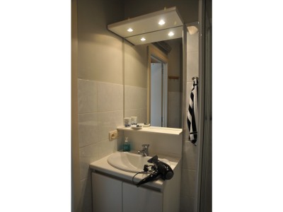 De studio bestaat uit een inkomhall/slaaphoek met een dubbel opklapbed, een badkamer met douche en toilet, een kitchenette voorzien van alle comfort en een woonkamer met een dubbel divan bed.