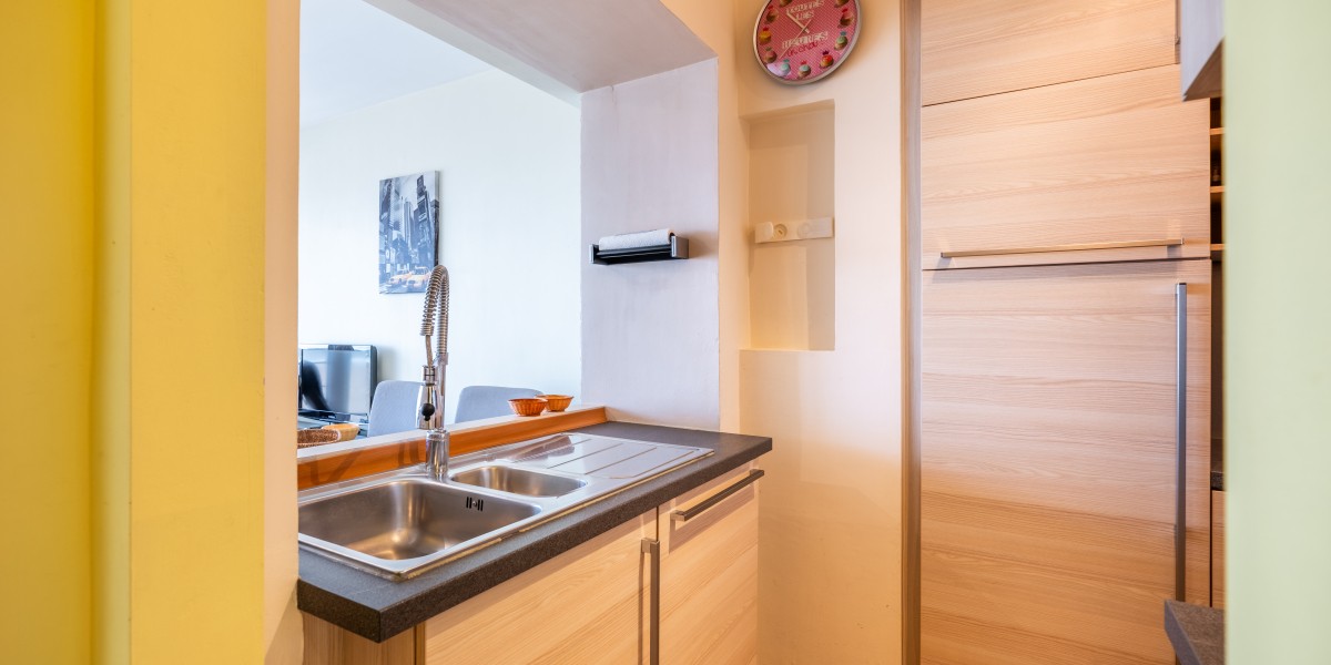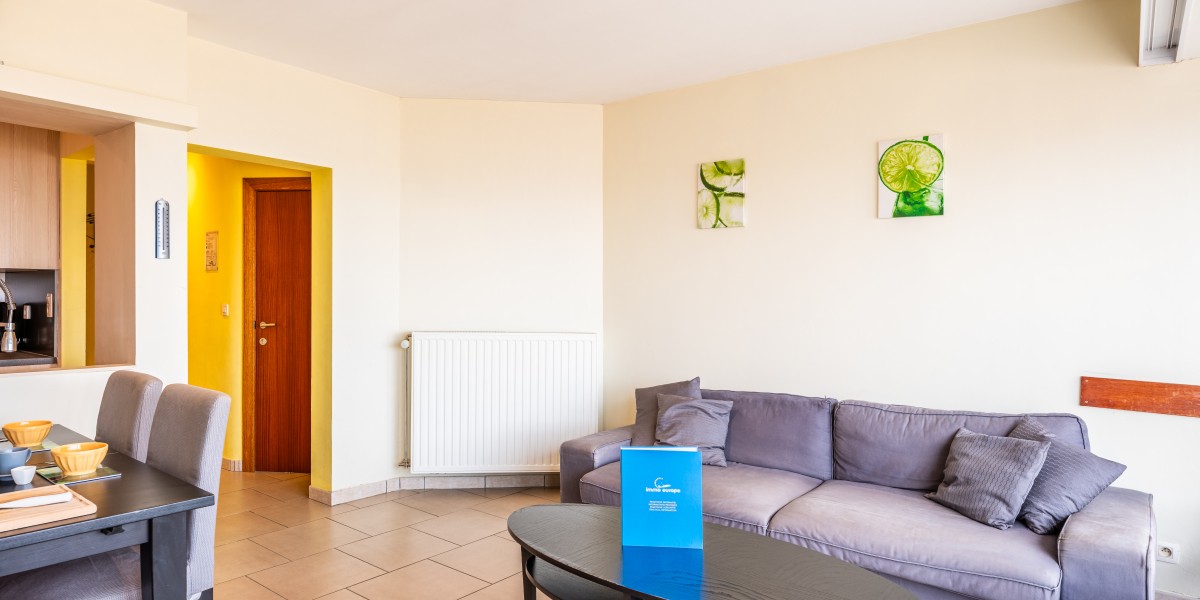 Het appartement heeft een woonkamer met zeezicht, een keuken voorzien van alle comfort, badkamer met douche, 2 slaapkamers waarvan één met een dubbelbed en één met 2 éénpersoonsbedden. Divanbed voor 2 personen in de woonkamer.