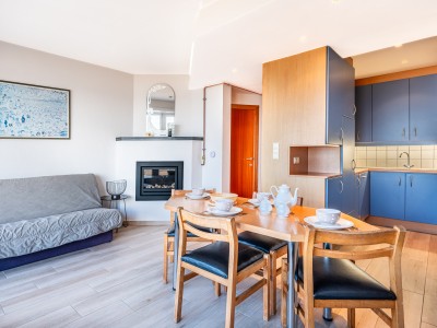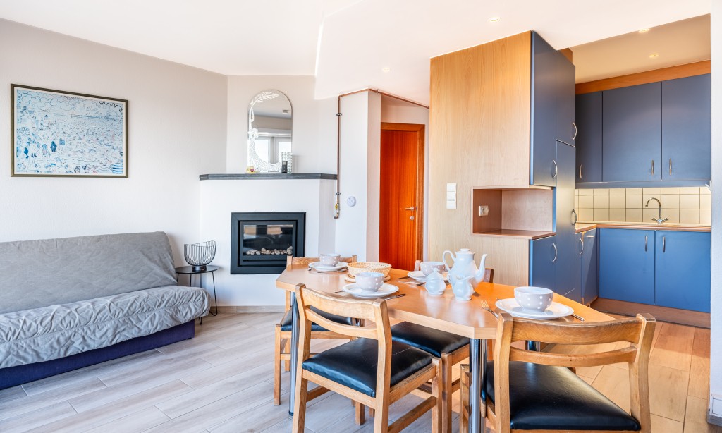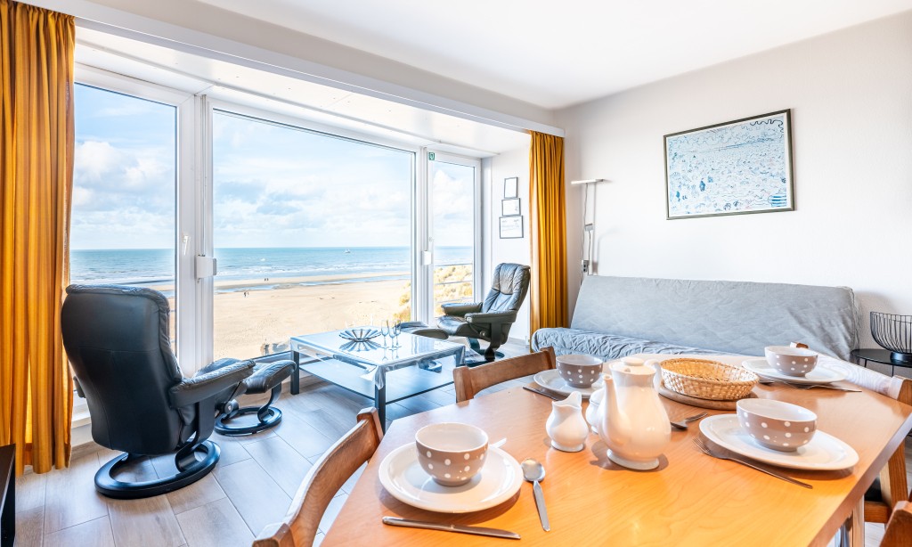 Het appartement heeft een woonkamer met zeezicht, een keuken voorzien van alle comfort, badkamer met bad, 2 slaapkamers waarvan één met tweepersoonsbed en één met stapelbed en divanbed. Er is nog een douchekamer in de slaapkamer met stapelbed met divanbed. Divanbed voor 2 personen in de woonkamer.