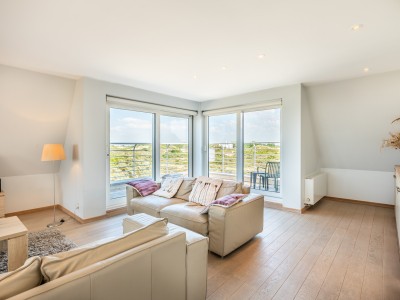 Heel ruime woonkamer met zeezicht, open ingerichte moderne keuken, 2 badkamers (één met douche en één met bad), 2 toiletten, ruime slaapkamers waarvan 2 met een tweepersoonsbed, kamer met een éénpersoonsbed en een kamer met een stapelbed en uitschuifbed voor één persoon. Balkons rondom de living en keuken.